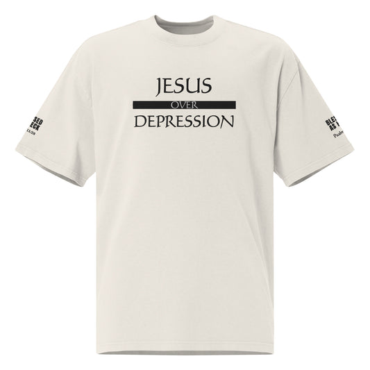 "Jesus over Depression" Embroidered Oversized faded t-shirt